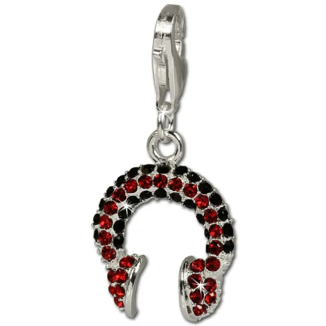 Ein Charm mit Zirkonias Kristallen – Kopfhörer rot/schwarz mit Zirkonias Kristallen – aus 925 Sterling Silber für Bettelarmband oder Halskette. Der Charms Anhänger passt auch an Armbänder anderer Hersteller oder kann als Kettenanhänger oder Anhänger für ein Handy genutzt werden. Die Zirkonias erstrahlen auf dem Charm im shiny Glanz.