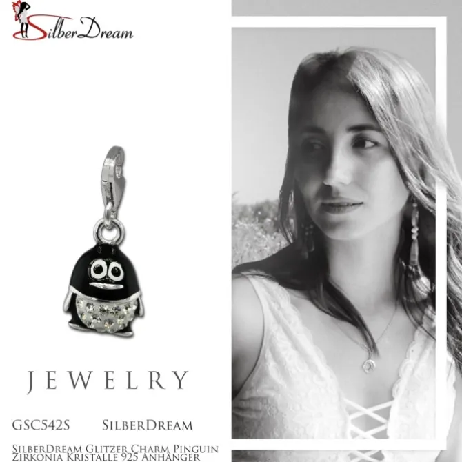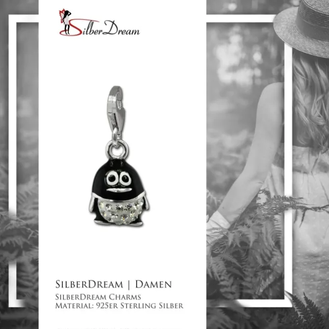 - Kurzbeschreibung: SilberDream Glitzer Charm Pinguin schwarz/weiß