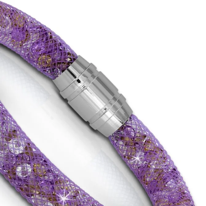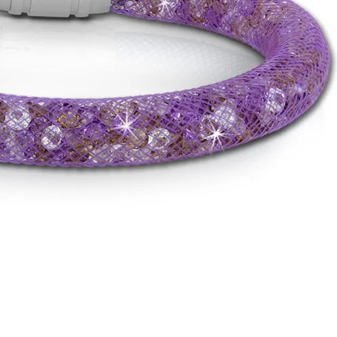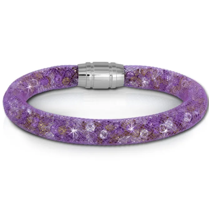 Das Armband passt für einen Armumfang bis zu ca. 20cm. Es besteht aus einem lilafarbenen Nylon-Netzschlauch, das mit vielen kleinen verschieden farbigen Kristallen gefüllt ist. Das 3D Armband hat einen sehr starken und polierten Edelstahl-Magnetverschluss.