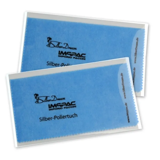 Zwei Stück Set SilberDream Imppac Schmuckreinigungs und -poliertücher blau zur Reinigung und Pflege von Schmuck speziell für Ringe, Ohrringe, Beads und Charms, Armbänder und Ketten der Fit4Style Silberschmuck Kollektion, aber auch für alle anderen Schmuckstücke geeignet.