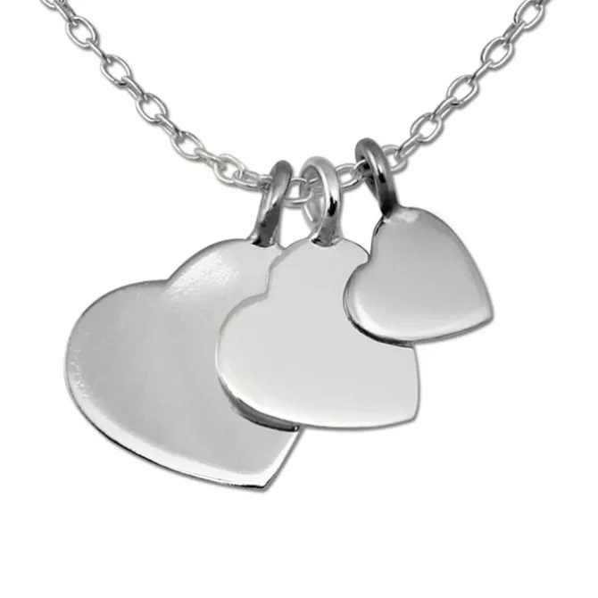 Eine zarte Halskette 3 Herzen in der Länge 45cm mit Federringverschluss. Das Kette ist aus der einzigartigen SilberDream Schmuck Kollektion und aus allergenfreiem, anlaufgeschütztem und poliertem 925 Sterling Silber. Die Kette ist sehr fein und edel verarbeitet.