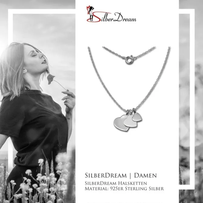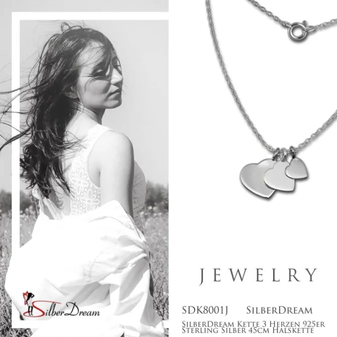 - Kurzbeschreibung: SilberDream Damenkette 3er Herzen Silber Kette 45cm