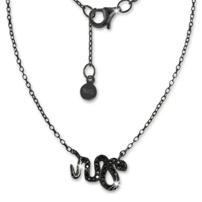 Eine zarte, geschwärzte Halskette Schlange Zirkonia schwarz in der Gesamt-Länge von 44cm mit einem Karabinerverschluss. Den Verschluss kann man bei der Länge 41cm, 42,5cm und 44cm einhängen. Die Kette ist aus der einzigartigen SilberDream Schmuck Kollektion und aus allergenfreiem, anlaufgeschütztem und geschwärzten 925 Sterling Silber. Diese Halskette ist sehr fein und edel verarbeitet. Die Schlange besteht aus vielen kleinen, funkelnden, schwarzen Zirkonias.