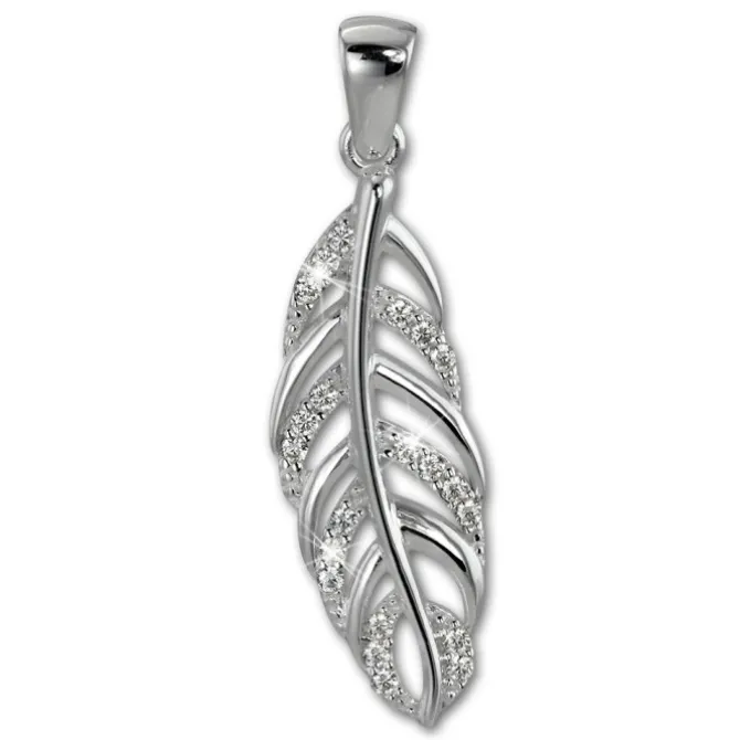 Ein Kettenanhänger – Feder – mit vielen kleinen weißen Zirkonias. Der Anhänger ist aus unserer einzigartigen SilberDream Kollektion und aus anlaufgeschütztem 925er Sterling Silber. Wir haben zu diesem Ketten-Anhänger die passenden Ohrringe im Sortiment.