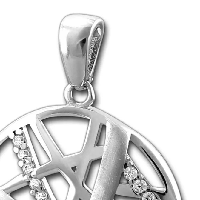 Ein Kettenanhänger – Scheibe – mit funkelnden, weißen Zirkonias. Der Anhänger ist aus unserer einzigartigen SilberDream Kollektion und aus anlaufgeschütztem, glänzendem und mattiertem 925er Sterling Silber. Wir haben die passenden Ohrringe im Programm, schauen sie einfach unter SDO4…. nach!