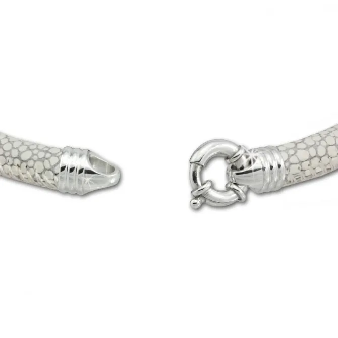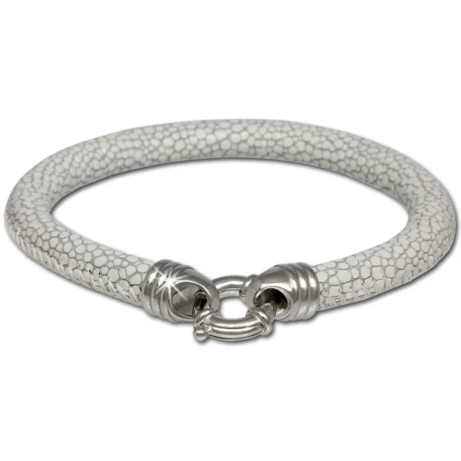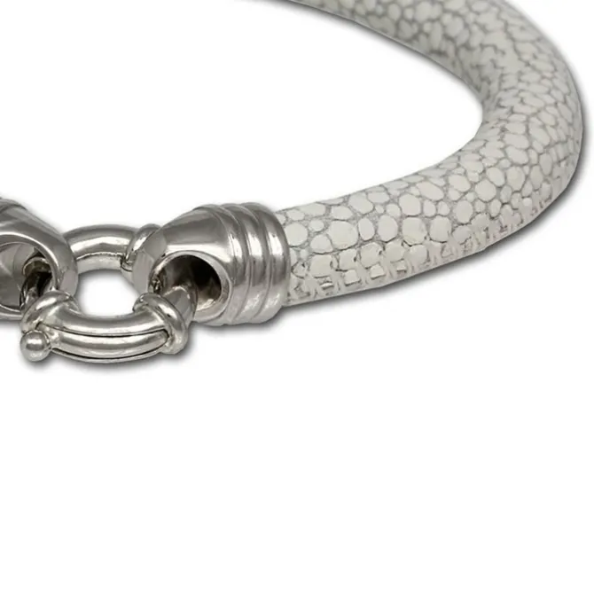 Ein Leder Armband Rochenlederprägung in der Farbe weiß mit Sterling Silber 925er Federring Verschluss. Die Breite des Leder Bandes ist 6mm und die Länge ist 20cm.