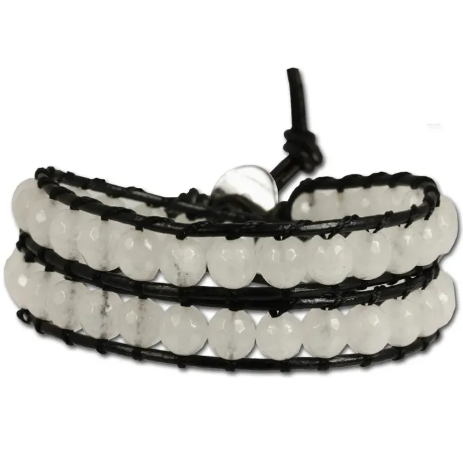 Damen Lederarmband mit geschliffenen weißen Achat Bergkristall Steinchen.