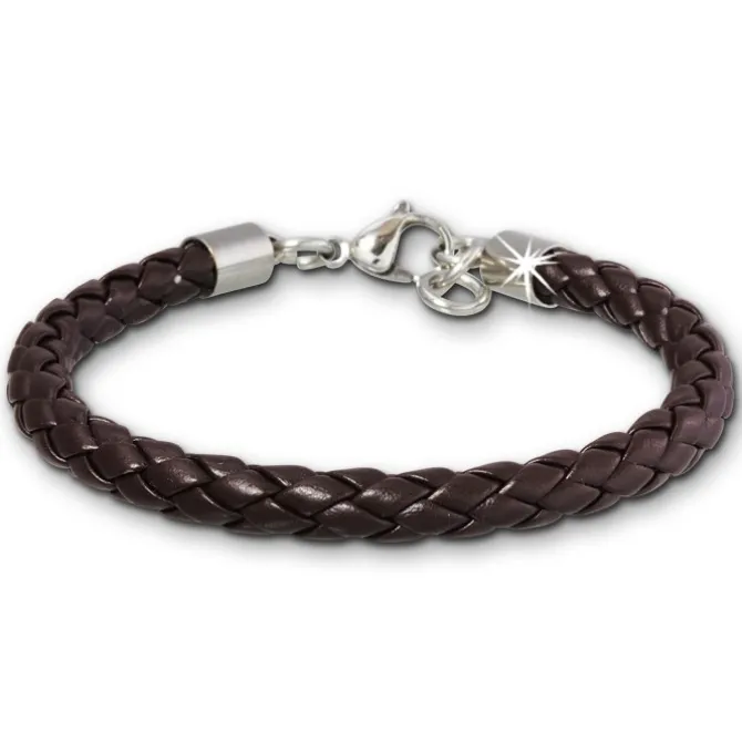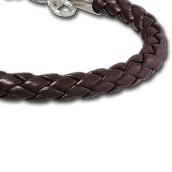 - Kurzbeschreibung: Lederarmband beflochten braun mit Edelstahl -Karabinerverschluss