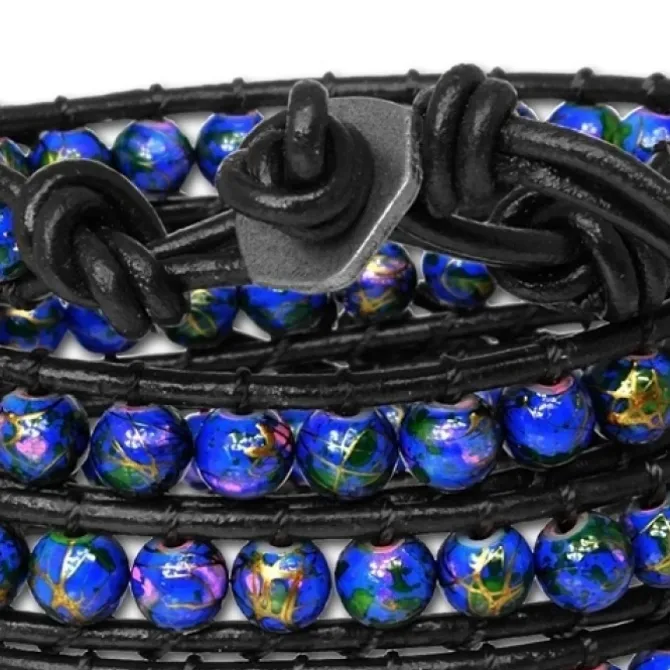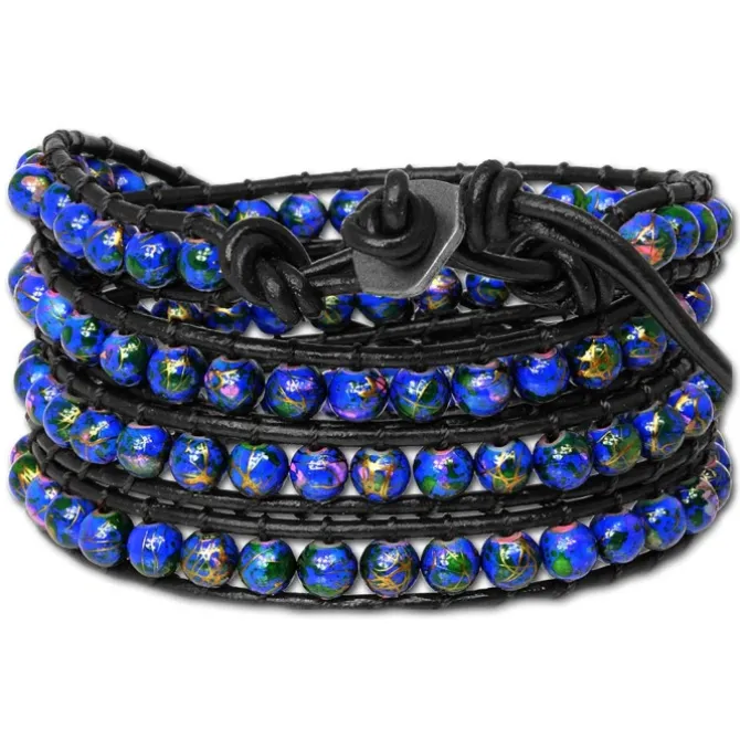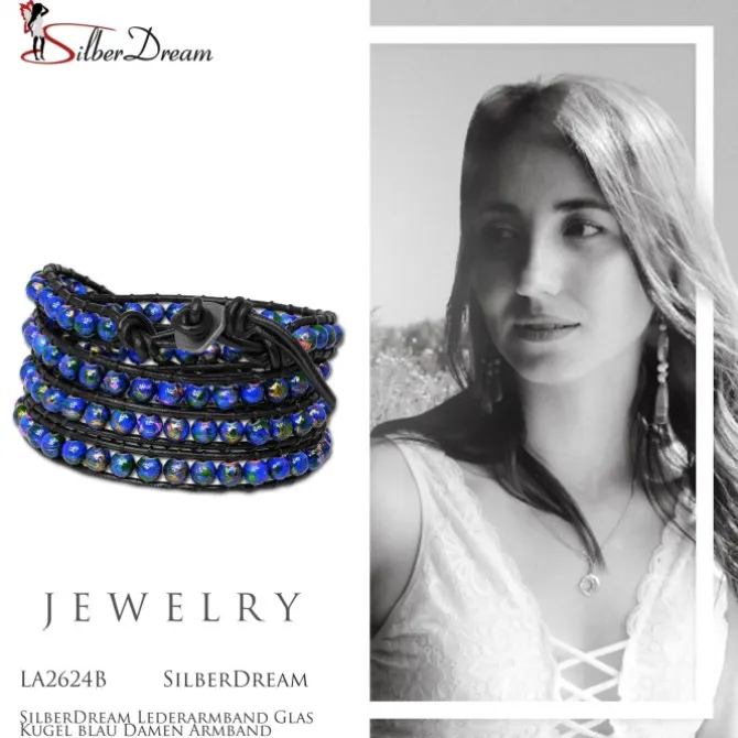 - Kurzbeschreibung: Damen Lederarmband mit blauen Kugeln