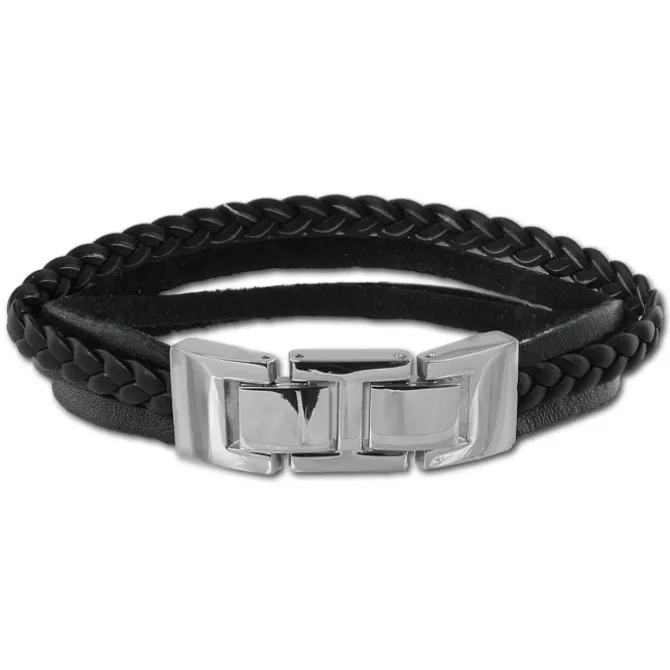 - Kurzbeschreibung: Lederarmband schwarz mit Zierkordel und Edelstahlverschluss