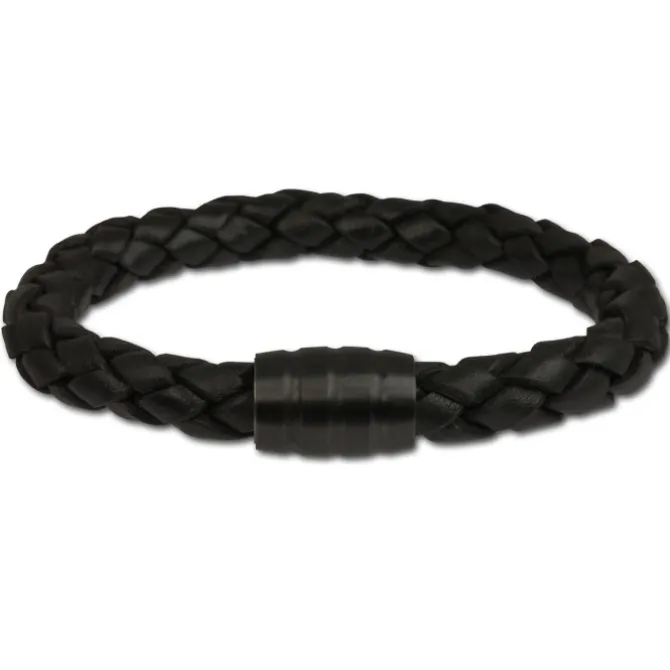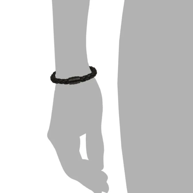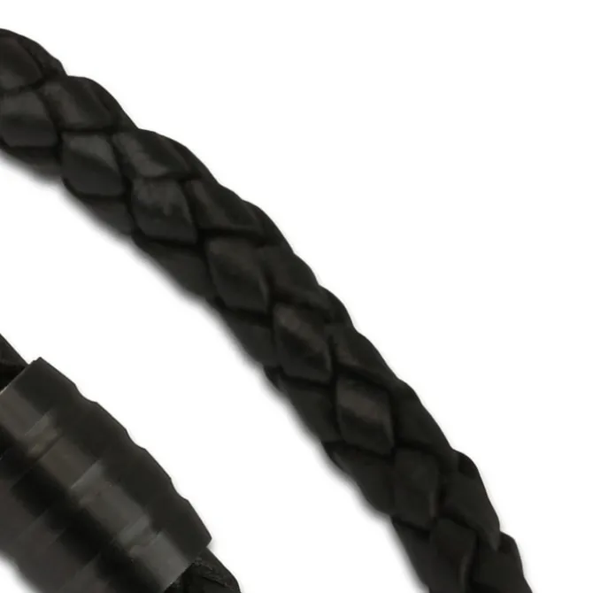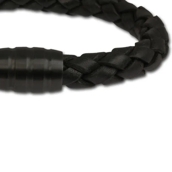 Ein geflochtenes Leder Armband in der Farbe schwarz mit einem geschwärzten Stainless Steel Magnet Verschluss. Die Breite des Leder Bandes ist 8mm und die Länge ist 20,5cm.