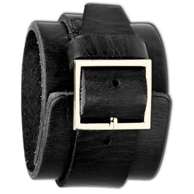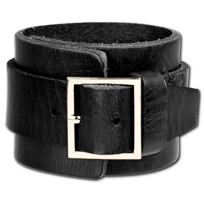 Herren Lederarmband schwarz mit Edelstahl Schnallen-Verschluss.