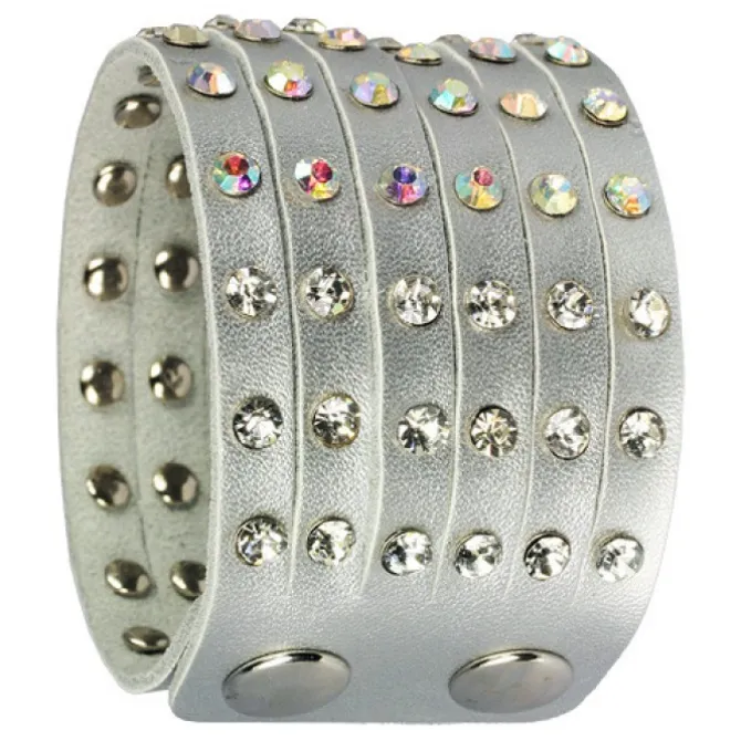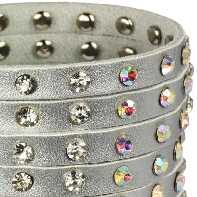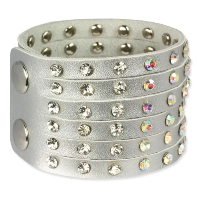 Damen Lederarmband silber mit Zirkonia Steinchen.