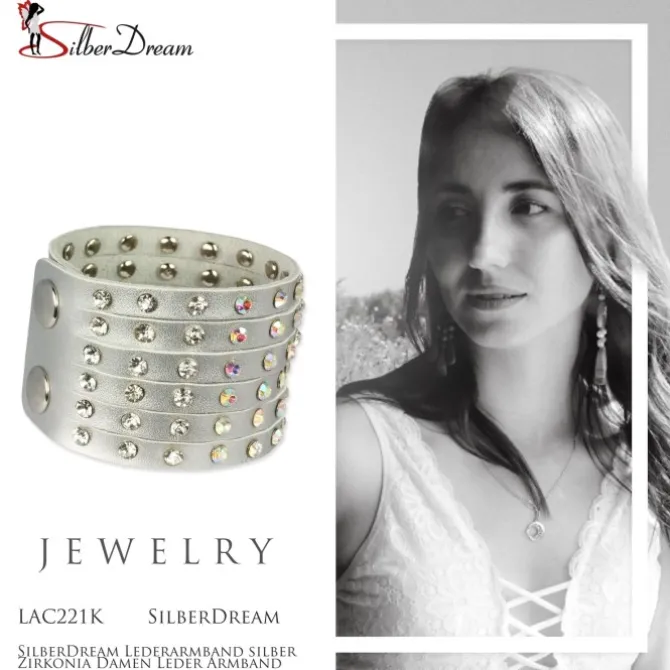 - Kurzbeschreibung: Damen Lederarmband silbern mit Zirkonia Steinen