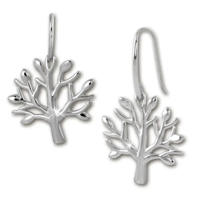 Ein Paar Ohrhänger Lebensbaum für Damen aus unserer einzigartigen SilberDream Schmuck-Kollektion aus anlaufgeschütztem 925 Sterling Silber. Die passende Kette finden Sie unter SDK50344J