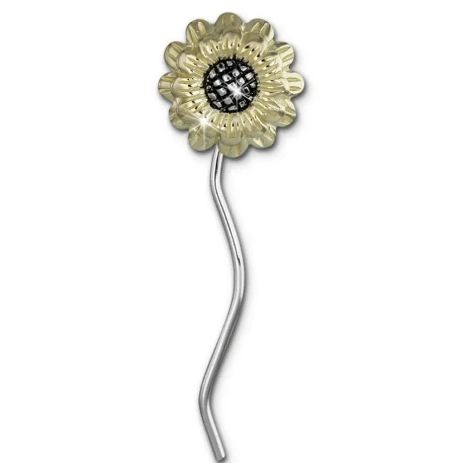 Ein Paar Ohrhänger Blume – Sonnenblume – Damen Ohrringe aus der SilberDream Schmuck Kollektion aus anlaufgeschütztem 925 Sterling Silber und teilweise 333er Gelbgold vergoldet. Man steckt den Ohrring einfach durch das Loch, der Ohrring hält durch die Biegung ohne Verschluss.