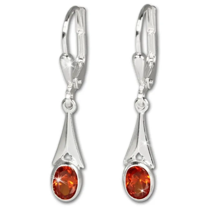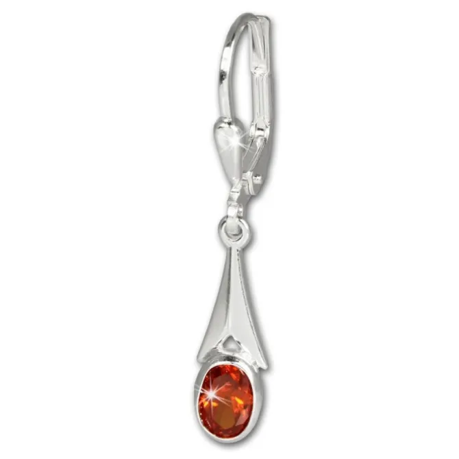 1 Paar Ohrringe Zirkonia Stein orange-rot aus unserer einzigartigen SilberDream Kollektion aus anlaufgeschütztem 925 Sterling Silber.