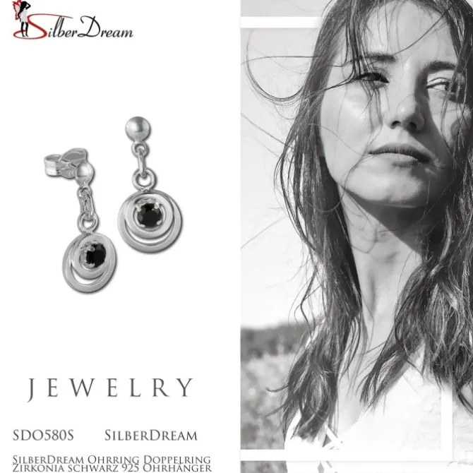 - Kurzbeschreibung: SilberDream Ohrhänger Doppelring schwarz 925 Sterling Silber