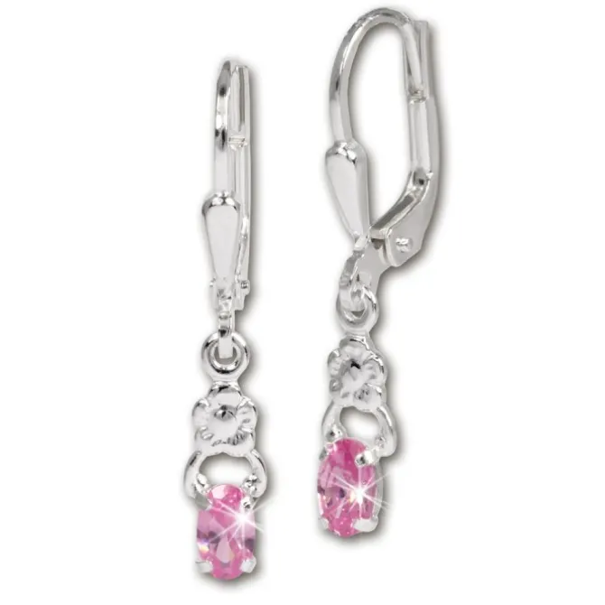 Ohrhänger (1 Paar) Kleine Blume mit rosa farbenen Zirkonia. Die Ohrringe sind aus unserer einzigartigen SilberDream Kollektion aus anlaufgeschütztem 925 Sterling Silber. Diese Ohrhänger sind auf Grund der Größe auch sehr gur für Kinder geeignet.