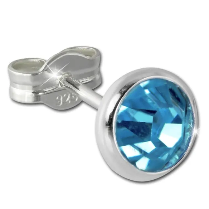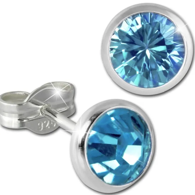 Ein Paar Ohrstecker Zirkonia hellblau, 6mm Ohrringe aus unserer einzigartigen SilberDream Kollektion aus anlaufgeschütztem 925 Sterling Silber.