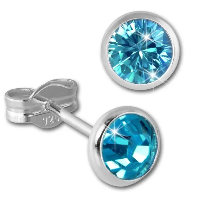 Ein Paar Ohrstecker Zirkonia türkis, 5mm Ohrringe aus unserer einzigartigen SilberDream Kollektion aus anlaufgeschütztem 925 Sterling Silber.