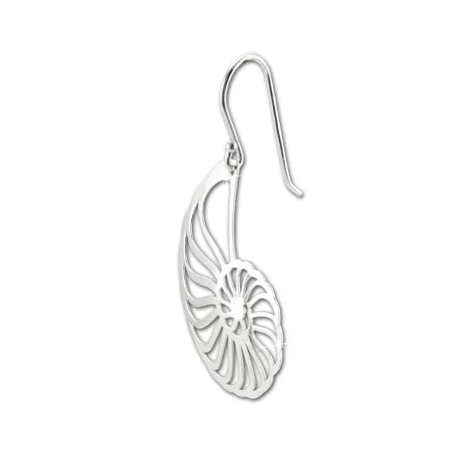 Die glänzenden Ohrhänger Nautilus Muschel sind aus poliertem 925 Sterling Silber und schwingen am Ohr hin und her. Die Ohrringe sind leicht gewölbt und sind aus der SilberDream Silberschmuck Schmuck Kollektion.
