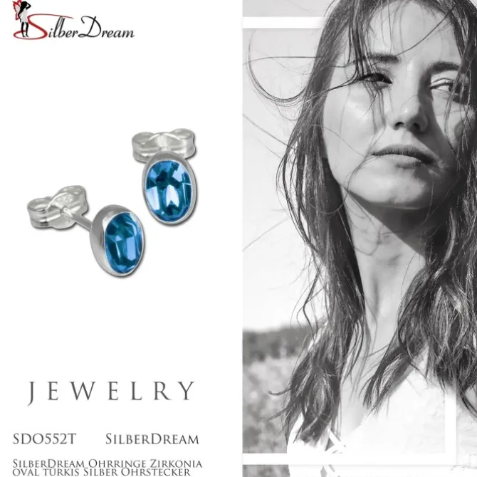 - Kurzbeschreibung: SilberDream Ohrstecker Zirkonia oval türkis 925er Silber