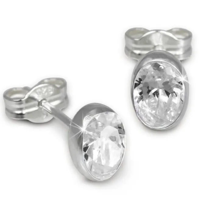 Ein Paar Ohrstecker Zirkonia oval weiß, Ohrringe aus der SilberDream Schmuck Kollektion aus anlaufgeschütztem 925 Sterling Silber.