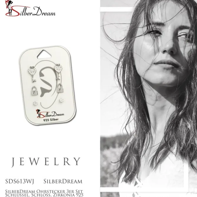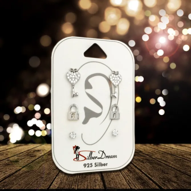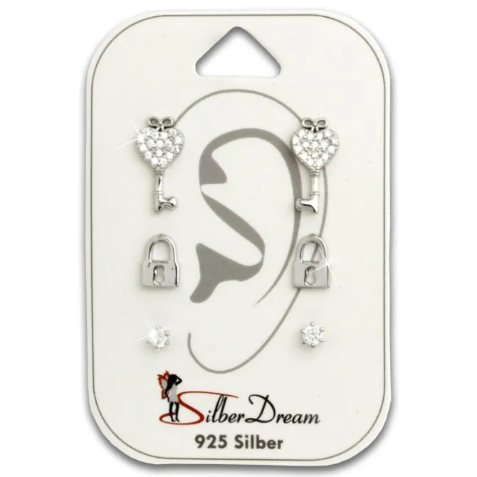 - Kurzbeschreibung: SilberDream Damenohrringe 3er Set: Schlüssel, Schloss, Zirkonia 925er Silber
