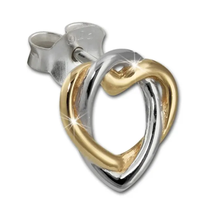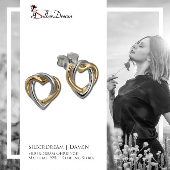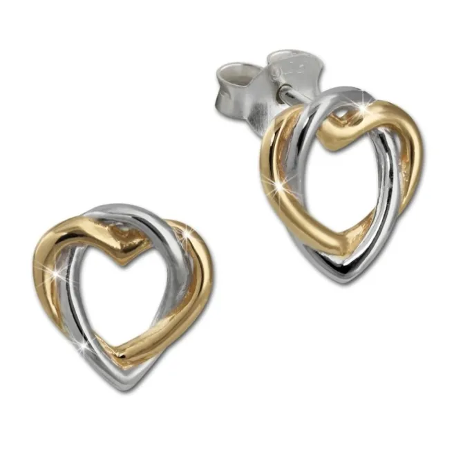 Ein Paar Ohrstecker – Herz unendlich vergoldet – Damen Ohrringe aus der SilberDream Schmuck Kollektion aus anlaufgeschütztem 925 Sterling Silber. Die zweifarbigen (two tone) Ohrringe sind zum Teil mit 333er Gelb Gold überzogen.
