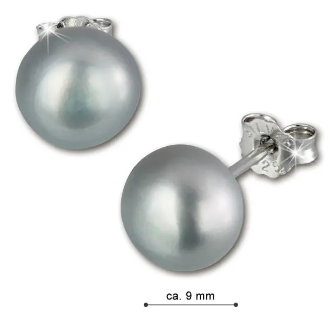 Ein Paar Damen Ohrstecker – Süßwasser Zuchtperle grau 8,5-9mm – Ohrringe aus unserer einzigartigen SilberDream Kollektion aus anlaufgeschütztem 925 Sterling Silber.