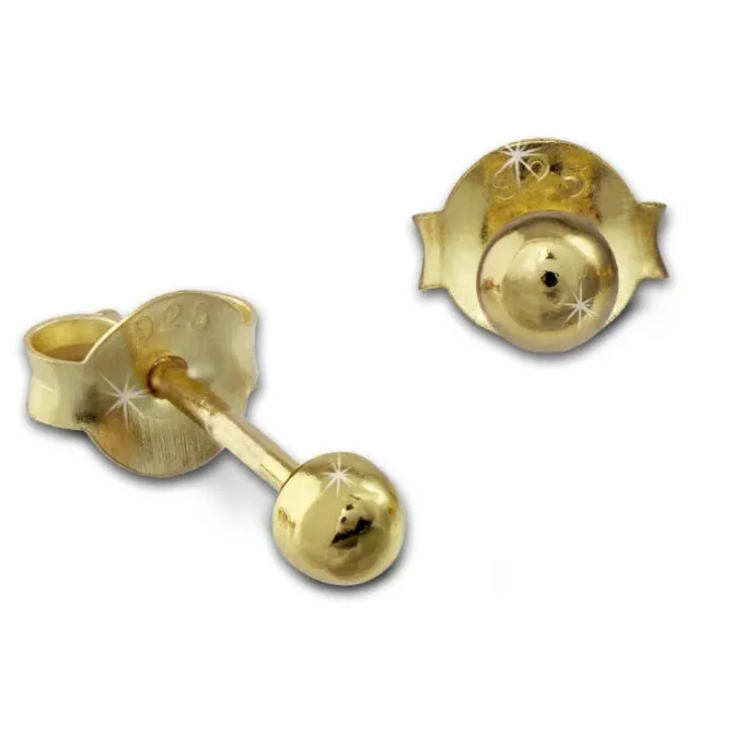 Ein Paar vergoldete Ohrstecker Kugel glänzend. Die glänzenden Ohrringe sind mit 585er Gold überzogen und bestehen aus 925 Sterling Silber. Sie sind aus unserer aktuellen SilberDream Schmuck Kollektion.