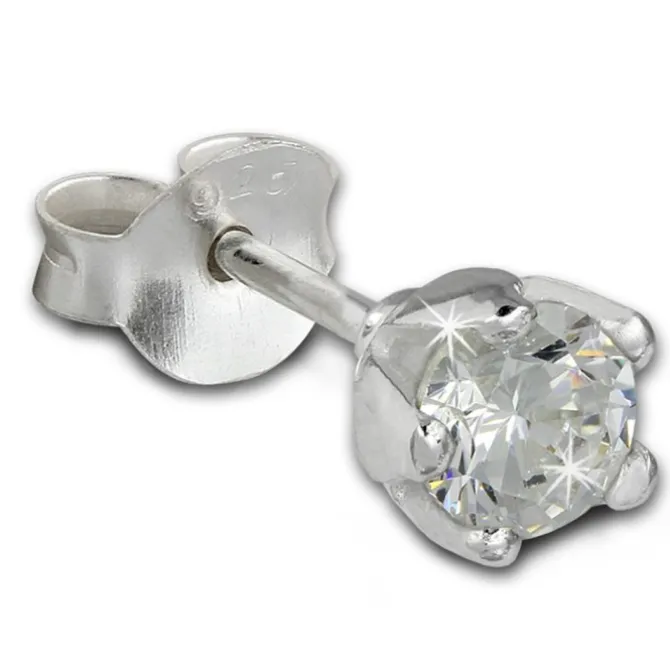 Ohrstecker Zirkonia weiß Durchmesser ca. 5mm aus poliertem 925 Sterling Silber. Mini Ohrstecker, sehr gut geeignet für Zweit- und Drittloch. Die Ohrstecker Zirkonia weiß sind aus der SilberDream Silberschmuck Schmuck Kollektion.