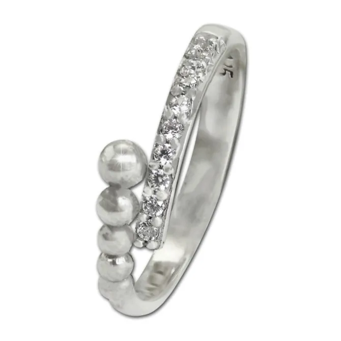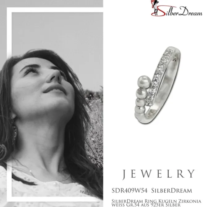 Ein moderner Silberring Dream im trendigem Design mit immer kleiner werdenden Kugeln und weißen, funkelnden Zirkonias. Der Ring ist aus unserer einzigartigen SilberDream Kollektion aus anlaufgeschütztem 925 Sterling Silber. Der Ring hat eine Größe von 54 und damit einen Innendurchmesser von ca. 17,2mm. Den Ring gibt es auch in den Größen 56, 58 und 60.