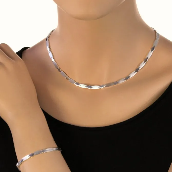 Ein trendiges Komplett Set – Collier & Armband Muster – aus unserer einzigartigen SilberDream Kollektion. Dieses Schmuckset ist aus anlaufgeschütztem 925 Sterling Silber.