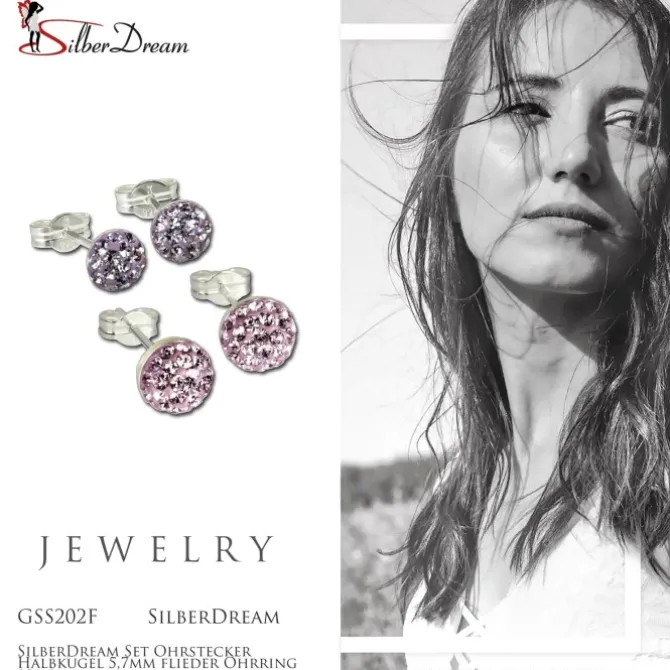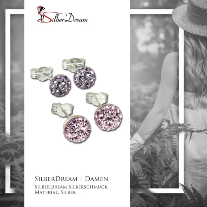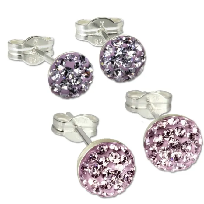 - SilberDream Ohrstecker Halbkugel flieder 925 Glitzer Kristalle GSO221F