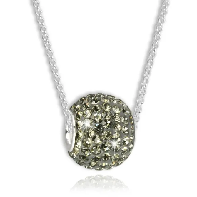 Eine Halskette mit einem Bead aus Zirkonias Kristallen grau. Kette und Bead aus 925 Sterling Silber. Die Zirkonias funkeln grau auf dem Bead.