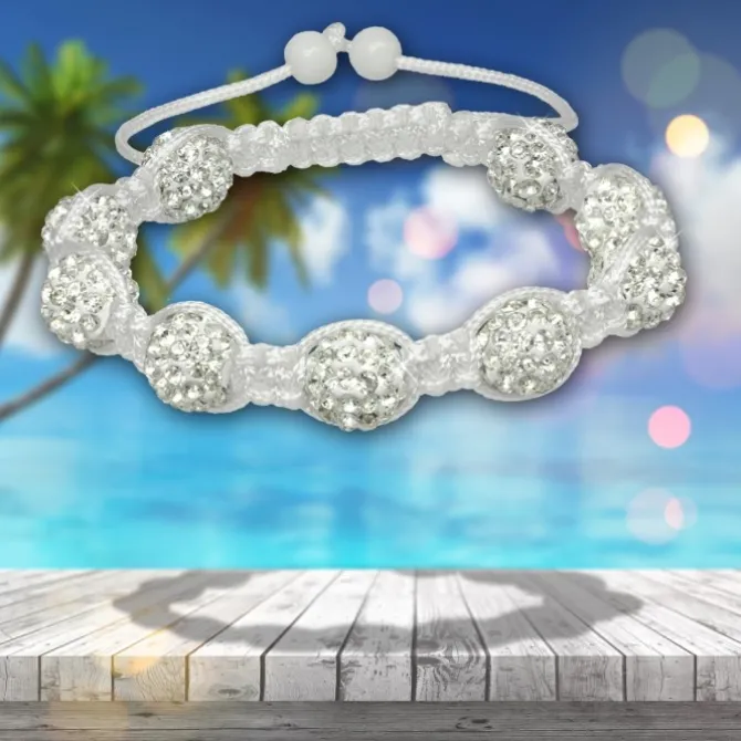 Shamballa Armband weiß mit 9 funkelnden weißen Zirkonia Kugeln und 2 kleinen Kugeln aus unserer einzigartigen SilberDream Kollektion.