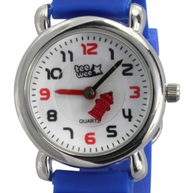 Kinder-Armbanduhr – Feuerwehr – mit blauem Kautschukarmband und weißem Ziffernblatt aus der Tee-Wee Uhren Kollektion.
