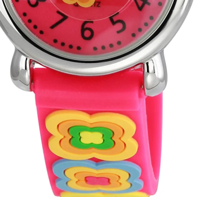 - Kurzbeschreibung: Teenie-Weenie Kinderuhr pink Blumen 3D Kautschukband UW365P