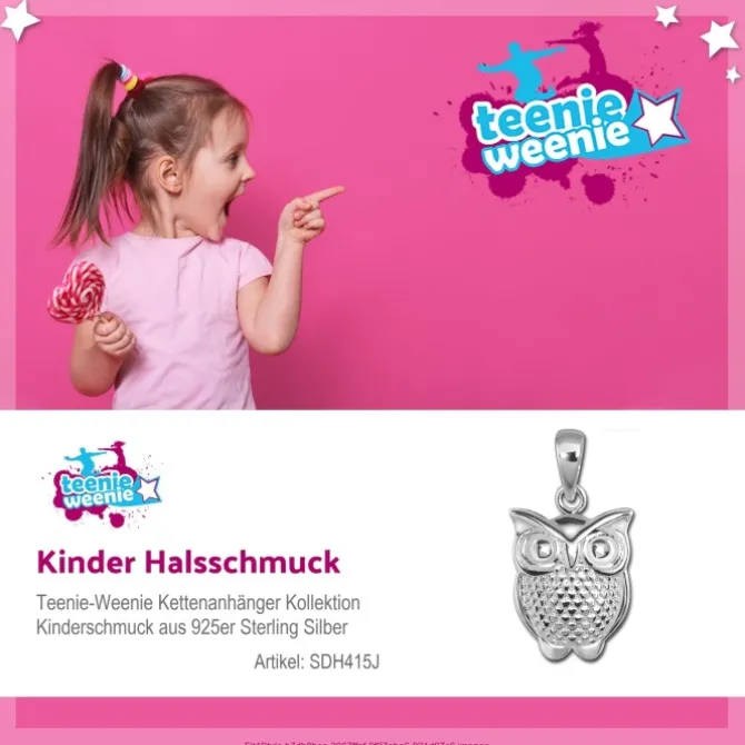 Kinder Kettenanhänger aus 925er Sterling Silber aus der Teenie-Weenie Halsschmuck-Kinderkollektion. In der Teenie-Weenie Kollektion finden sie hoch modische und trendige Artikel. Es gibt Kinderschmuck aus Vollsilber, Edelstahl, Leder und anderen Materialien in vielen tollen Farben. Hier finden sie alles was Ihr Kind oder auch Teenager sucht.