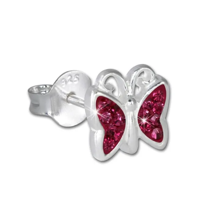 Ein Paar Kinder-Ohrstecker – Schmetterling Zirkonia pink – Ohrringe aus unserer einzigartigen SilberDream Kollektion aus anlaufgeschütztem 925 Sterling Silber.
