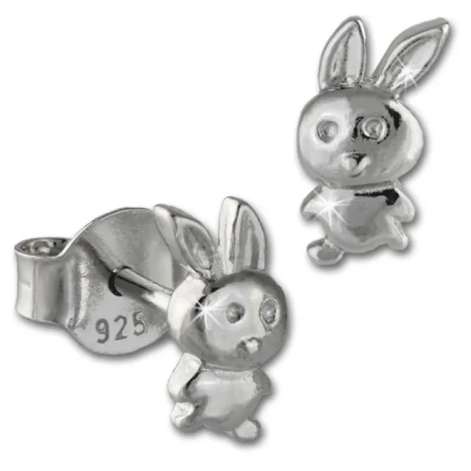 Ein Paar Kinder Ohrstecker – Häschen – aus der Teenie-Weenie Schmuck Kollektion aus rhodiniertem, anlaufgeschütztem 925 Sterling Silber.