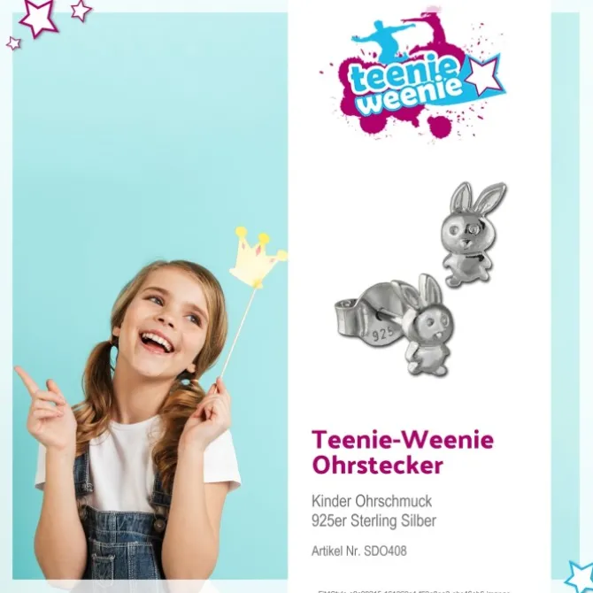 Schöne Kinder Ohrstecker aus 925er Sterling Silber aus der Teenie-Weenie Ohrschmuck-Kinderschmuck Kollektion. Unter dem Teenie-Weenie Schmuck finden sich kindlich bis jugendlich trendiger Artikel. Es gibt Kinderschmuck aus Leder, Silber, Edelstahl und weiteren Materialien in verschiedenen kindlichen Farben. Hier findet sich alles was Ihr Kind sucht.