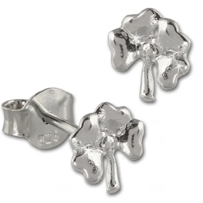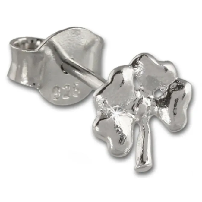 Ein Paar Damen Ohrstecker – 4 blättriges Kleeblatt – aus der Teenie-Weenie Schmuck Kollektion aus rhodiniertem, anlaufgeschütztem 925 Sterling Silber.