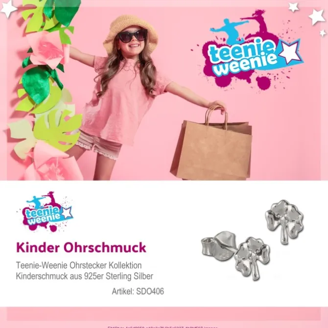 Stylische Kinder Ohrstecker aus 925er Sterling Silber aus der Teenie-Weenie Ohrschmuck-Kinderschmuck Kollektion. Unter dem Teenie-Weenie Schmuck finden sich kindlich bis jugendlich trendiger Artikel. Es gibt Kinderschmuck aus Leder, Silber, Edelstahl und weiteren Materialien in verschiedenen kindlichen Farben. Hier findet sich alles was Ihr Kind sucht.