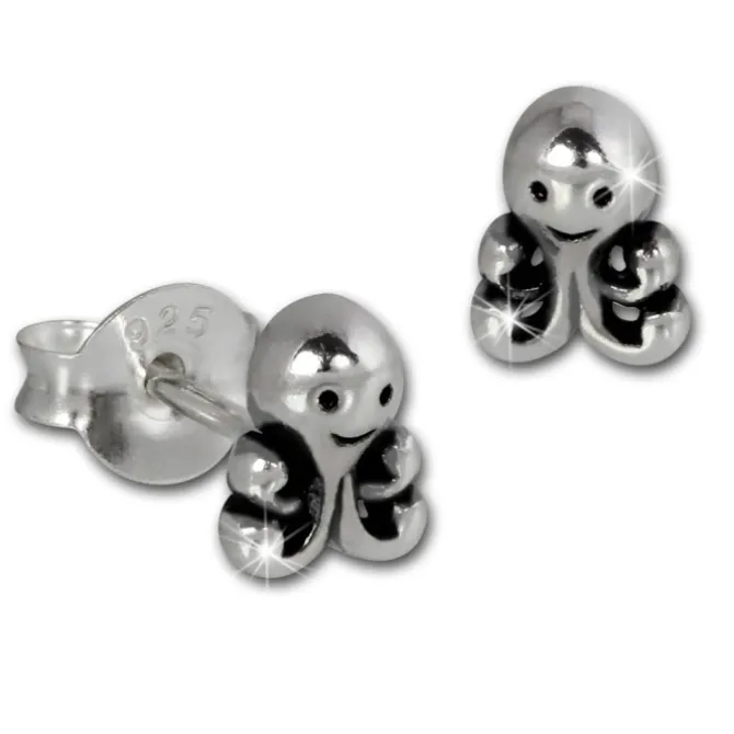 Ein Paar Ohrstecker Krake – trendige Silber Ohrringe aus unserer einzigartigen SilberDream Kollektion aus anlaufgeschütztem 925 Sterling Silber. Der kleine Ohrstecker ist auch geeignet für Zweit- und Drittloch.