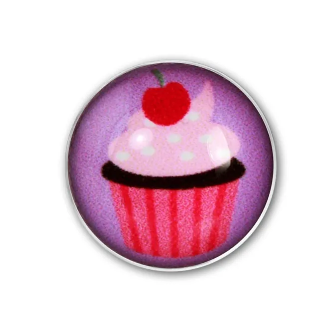 Ein Ohrstecker Logo Print Cupcake rosa mit einem Durchmesser von ca. 0,8cm aus 925 Sterling Silber. Diese runden Kinderohrringe sind leicht gewölbt und sind aus unserer Silberschmuck – Teenie-Weenie Kollektion.