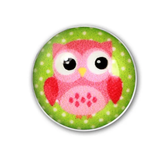 Ein Ohrstecker Logo Print Eule rosa mit einem Durchmesser von ca. 0,8cm aus 925 Sterling Silber. Diese runden Kinderohrringe sind leicht gewölbt und sind aus unserer Silberschmuck – Teenie-Weenie Kollektion.