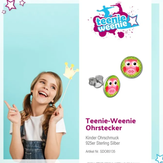 Schöne Kinder Ohrstecker aus 925er Sterling Silber aus der Teenie-Weenie Ohrschmuck-Kinderschmuck Kollektion. Unter dem Teenie-Weenie Schmuck finden sich kindlich bis jugendlich trendiger Artikel. Es gibt Kinderschmuck aus Leder, Silber, Edelstahl und weiteren Materialien in verschiedenen kindlichen Farben. Hier findet sich alles was Ihr Kind sucht.